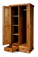 Наполнение: За дверкой слева 3 полки, за дверкой справа съёмная штанга. Два выдвижных ящика (без направляющих, на деревянных полозьях)
